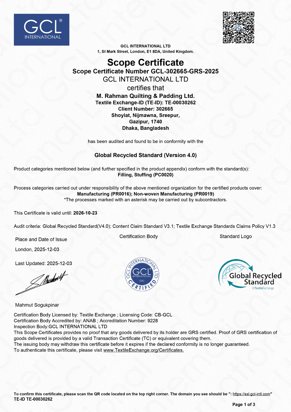 In recognition of our commitment to sustainability and eco-friendliness, we proudly hold Oeko-Tex 100, Global Recycle Standard (GRS), and Recycled Claim Standard (RCS) certifications. These achievements enable us to collaborate effectively with global brands.